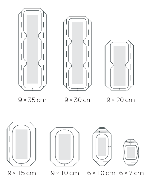 Transparentní krytí s absorpčním polštářkem je určen k pohlcování exsudátu z rany, ochraně rány a k fixaci jehel či lékařských katétrů.